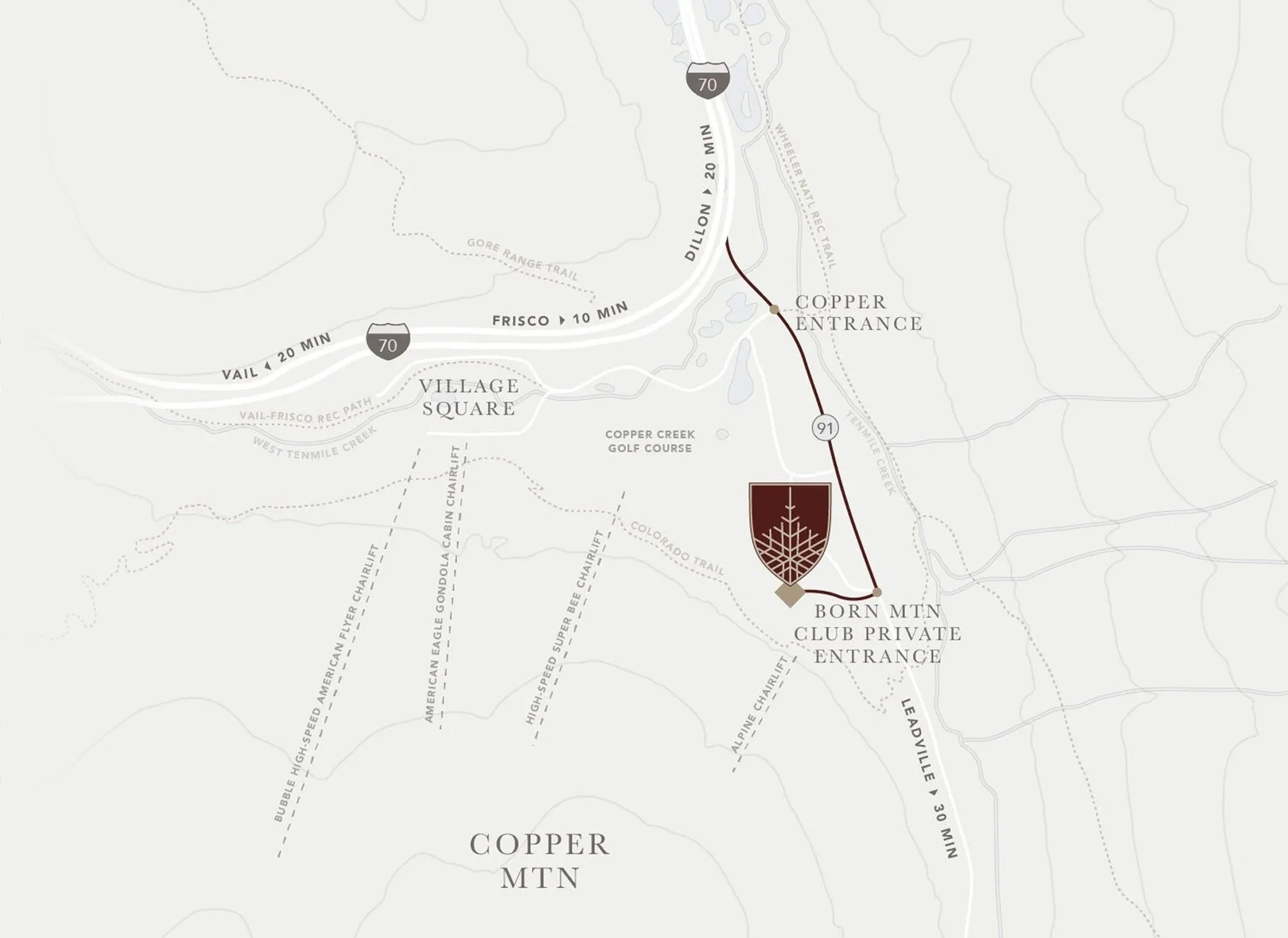 Just over an hour from Downtown Denver, a mile off Interstate 70 on Highway 91, and at the gateway to some of Colorado’s most celebrated recreation areas, you will find the private entrance to the Born Mountain Club Hotel.